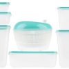 شاید مهمترین بخش این ست سبزیخشککن آن باشد. درحالحاضر سبزیخشککنهای متنوعی در بازار وجود دارند که از جنس کریستال، پلاستیک و استیل ساخته شدهاند. معمولا سبزیخشککنها دو نوع دستی و برقی دارند که هر دو مدل، خشککردن را به شکلی مشابه انجام میدهند. سبزیخشککن این ست بهصورت جداگانه و با نام Salad Spinner هم به فروش میرسد. این ظرف قابلیت شستوشو در ماشین ظرفشویی نیز دارد؛ همچنین به دلیل طراحی ارگونومیک دسته، افراد راستدست و چپدست میتوانند بهسادگی از آن استفاده کنند. کارکرد این دستگاه بسیار ساده است. کافی است بعد از قراردادن سبزی، کاهو و… در داخل محفظه، در آن را ببندید و دسته را به یکی از دو طرف بچرخانید. آب موجود در سبزی بهسادگی بر اثر چرخش از آن جدا شده و از شیارهای محفظهی داخلی وارد مخزن میشود.